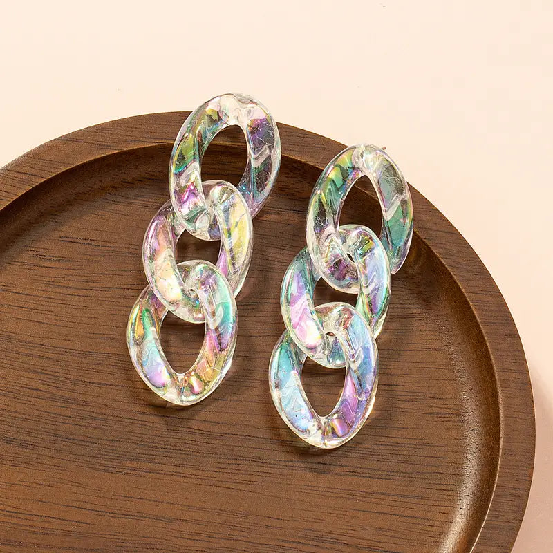 Colorful Acrylic Chain Dangle Earrings Rainbow Color Link Chain Ear Jewelry