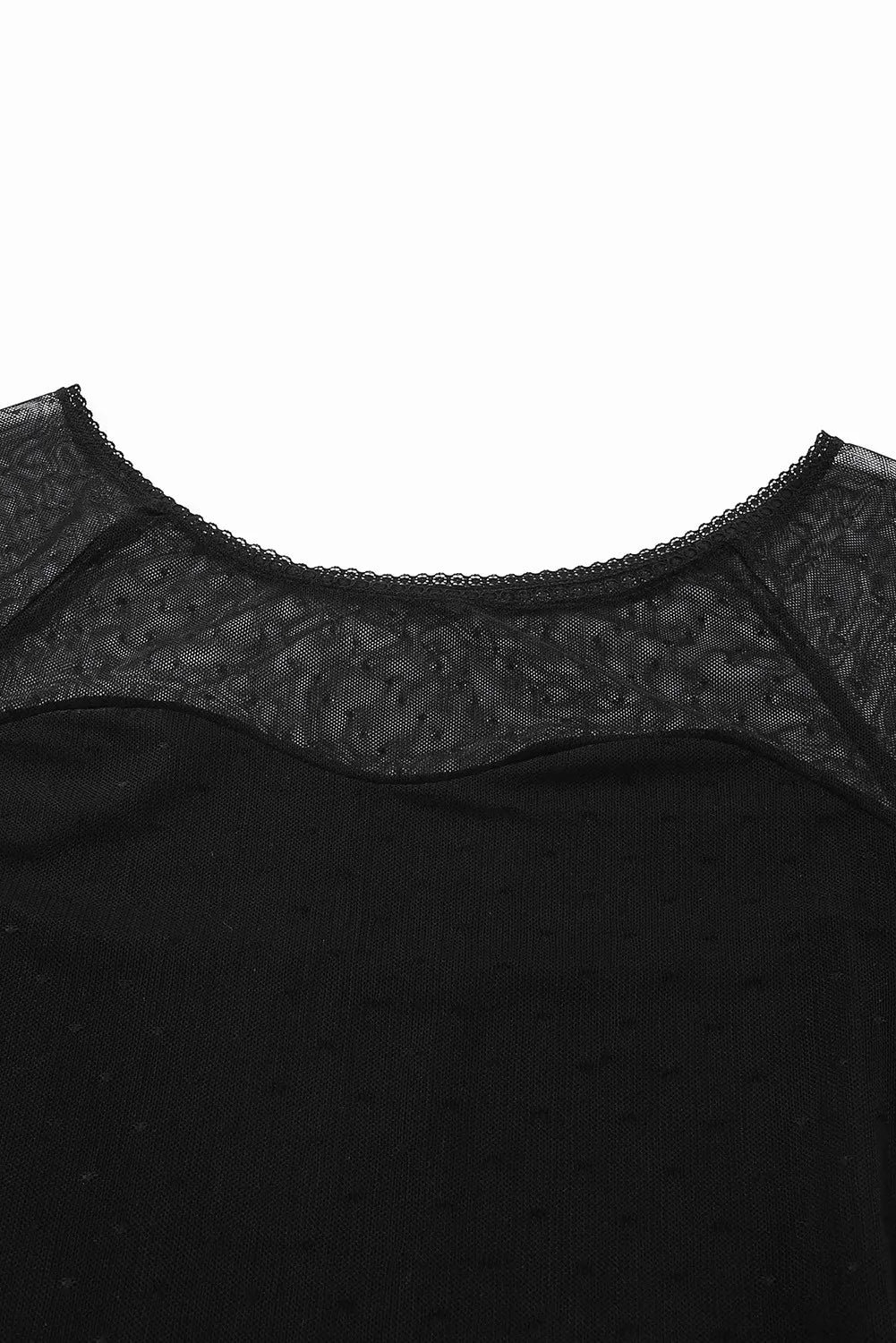 Black Dotty Mesh Overlay Long Sleeve Bodysuit.