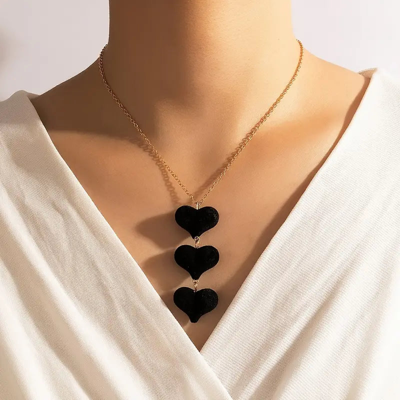 Crafted with precision and sophistication, the Black Velvet Heart Necklace features a single layer design with a unique geometric and irregular chain. This necklace makes for a fashionable and memorable Valentine's Day gift.