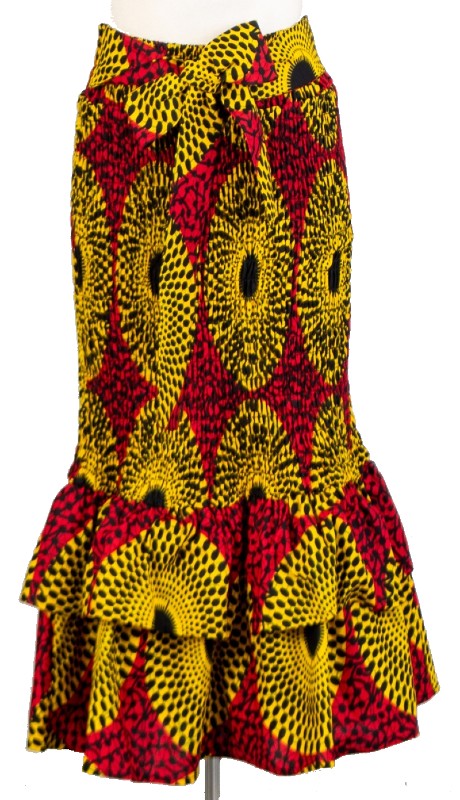 Celebrate culture with movement and elegance in this Authentic African Print Smocked Double-Tiered Skirt. Crafted from vibrant, traditional African print fabric, this skirt combines rich patterns and bold colors with a playful, flowing silhouette.