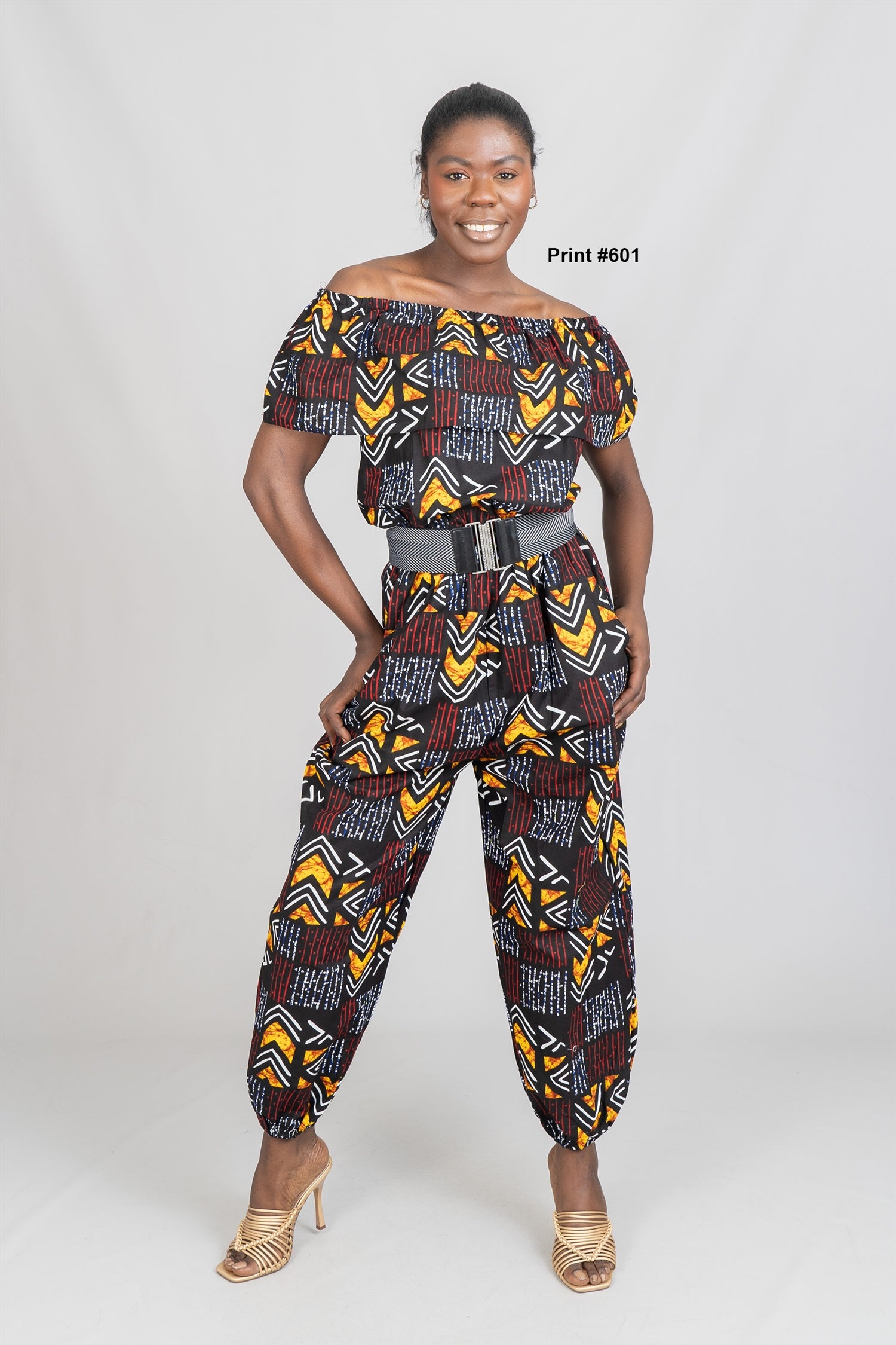 Turn heads in this Authentic African Print Off-Shoulder Jumpsuit, where striking prints meet a playful off-shoulder design. The tailored fit and flowing pant legs create a confident, stylish look for celebrations, evenings out, or statement-making occasions. Stand out with a vibrant, culturally inspired ensemble that exudes personality and flair.