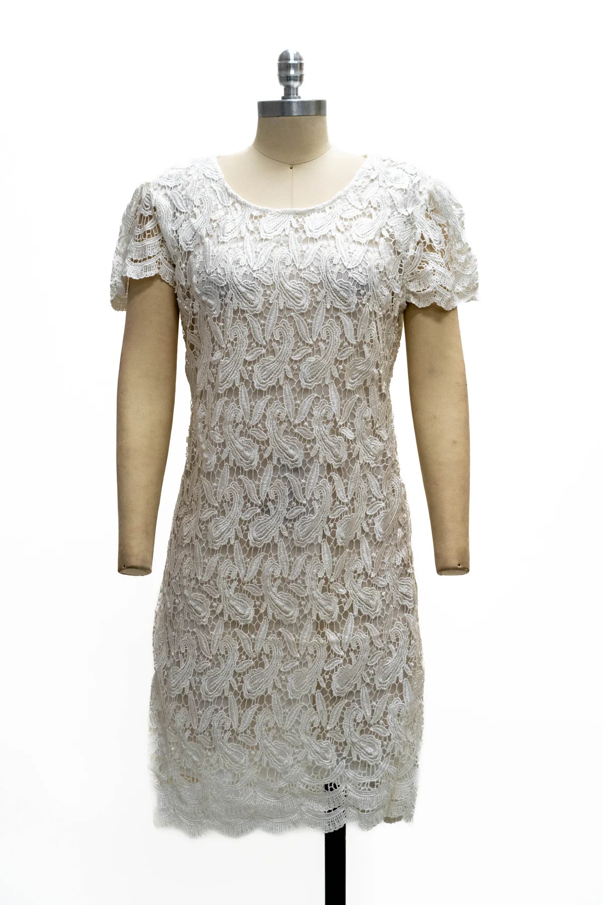 The Micheal K Lace Pearl Embellished Dress exudes timeless elegance with a modern twist. Crafted from delicate floral lace, this stunning piece features intricate pearl embellishments that add a touch of luxury and sophistication. The fitted silhouette flatters the figure beautifully, while the scalloped lace hemline and sheer lace sleeves create a romantic and graceful finish.