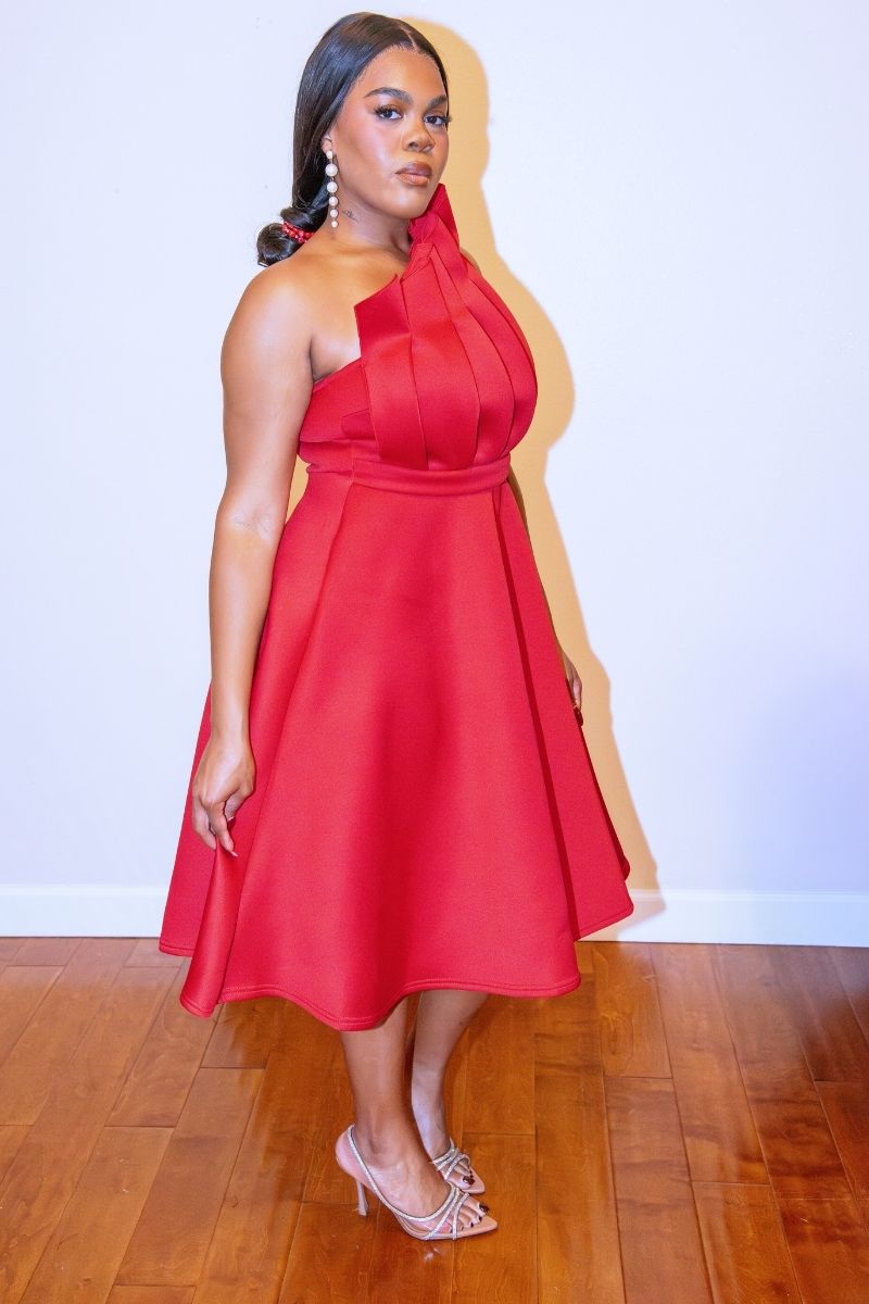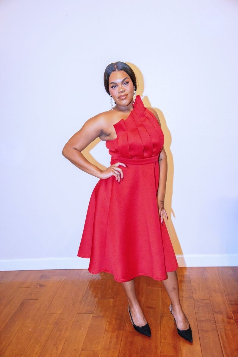 The Patchwork One Shoulder Evening Party Dress features an elegant and modern design with unique ruffle detailing. This sleeveless dress is perfect for any special occasion, adding a touch of sophistication and style.