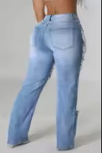 Vintage Cutout Pearl Denim: Silhouette: High-rise waist, wide-leg or straight leg cut, offering a modern and flattering drape from hip to hem. Embellishment: Scattered or linear pearl-style studs or beads decorating the front (often pocketed or thigh area), adding luxe detailing. Construction: Traditional 5-pocket denim with zip fly; typically made from a cotton-rich blend (like 98–99% cotton, 1–2% spandex) for subtle stretch and shape retention. Dimensions (estimating from similar styles): Inseam: 33" Leg opening: approximately 20-22"