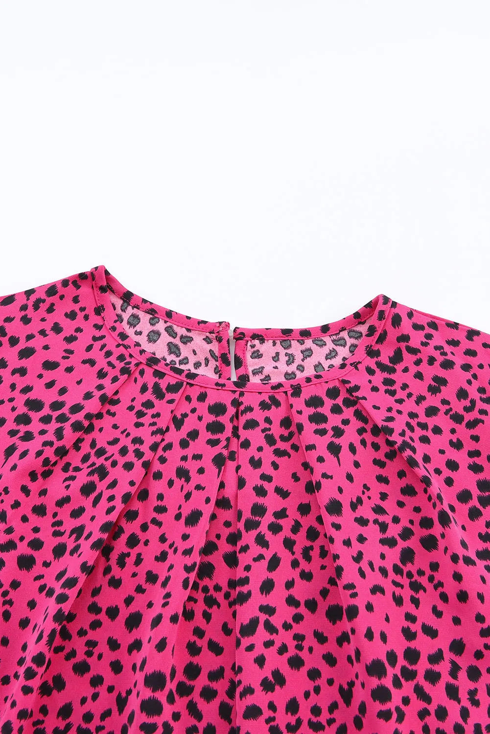 Rose Leopard Print Pleated Blouse with Keyhole.