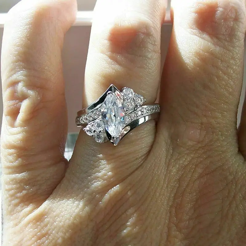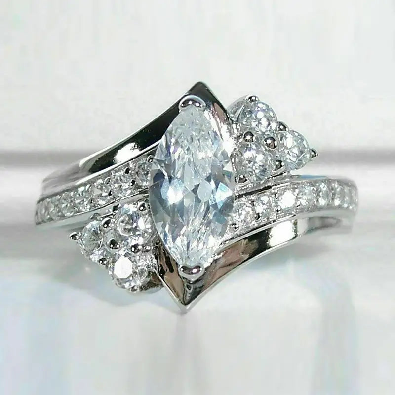925 Silver Plated Zircon Ring Fashion Women Marquise Ring Bridal Wedding Fine Jewelry Daily Casual Accessories.
