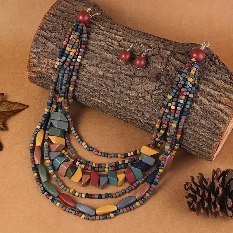 Crafted with finesse from premium quality wooden beads, this timeless necklace set embodies the essence of tribal artistry.